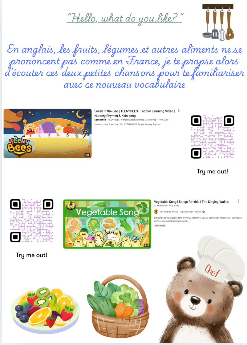 Ce petit livret rigolo est parfait pour apprendre les fruits-légumes et autres denrées en anglais.